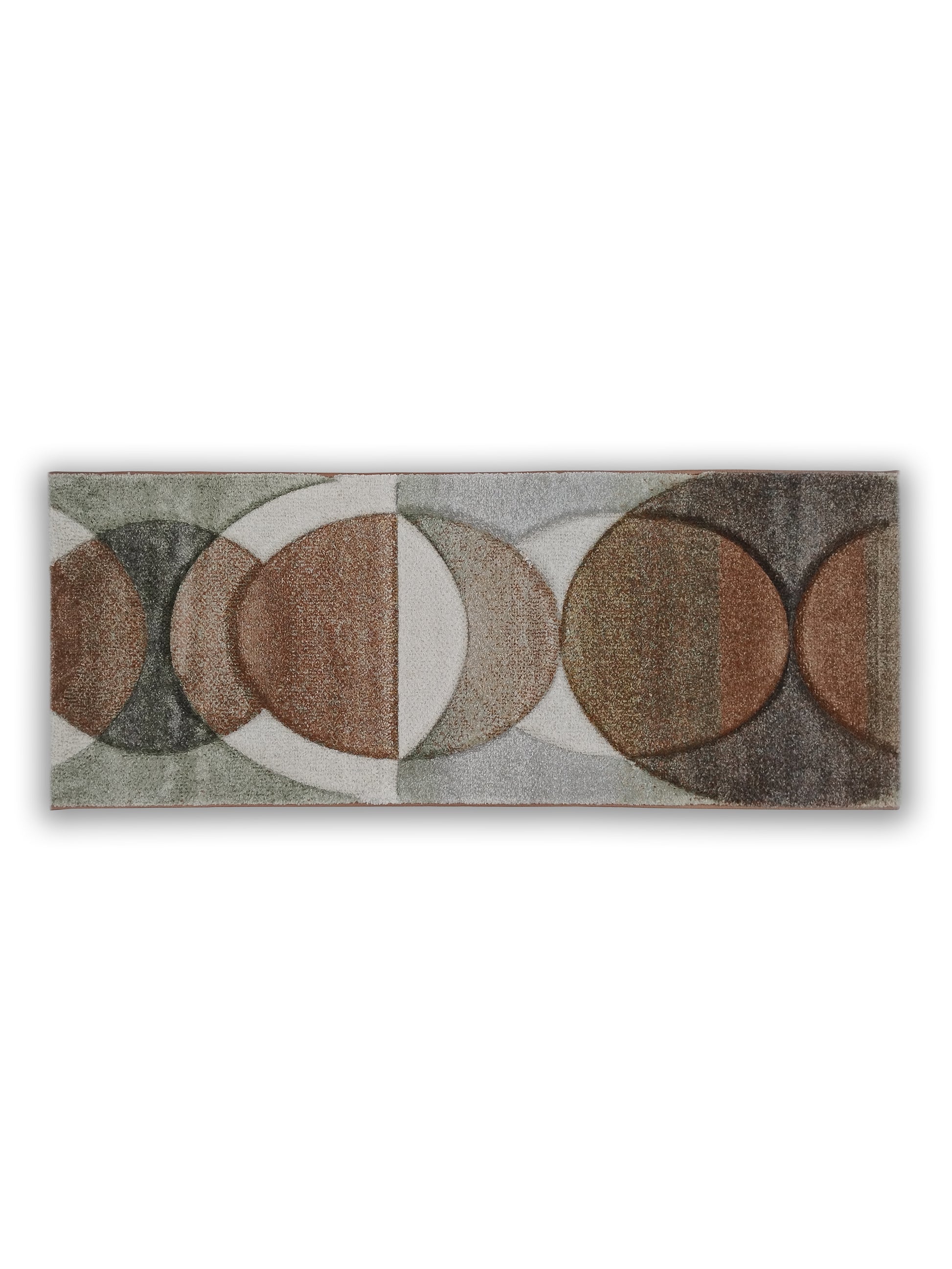 Add contemporary flair to your home with this multicolor geometric runner, featuring an abstract circle motif in shades of terracotta, olive, grey, brown, and ivory. The plush, medium-pile surface creates a cozy and inviting feel, while the bold overlapping curves deliver a modern artistic accent. Designed for bedrooms, hallways, or living areas, this runner pairs striking design with durability and easy care.